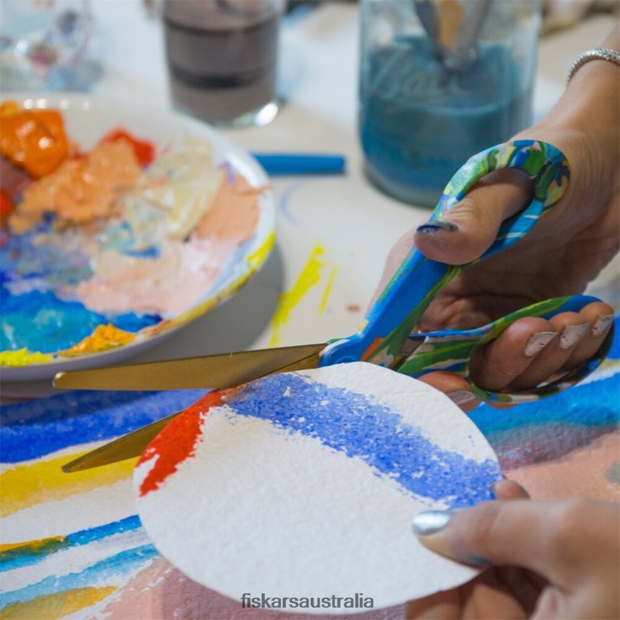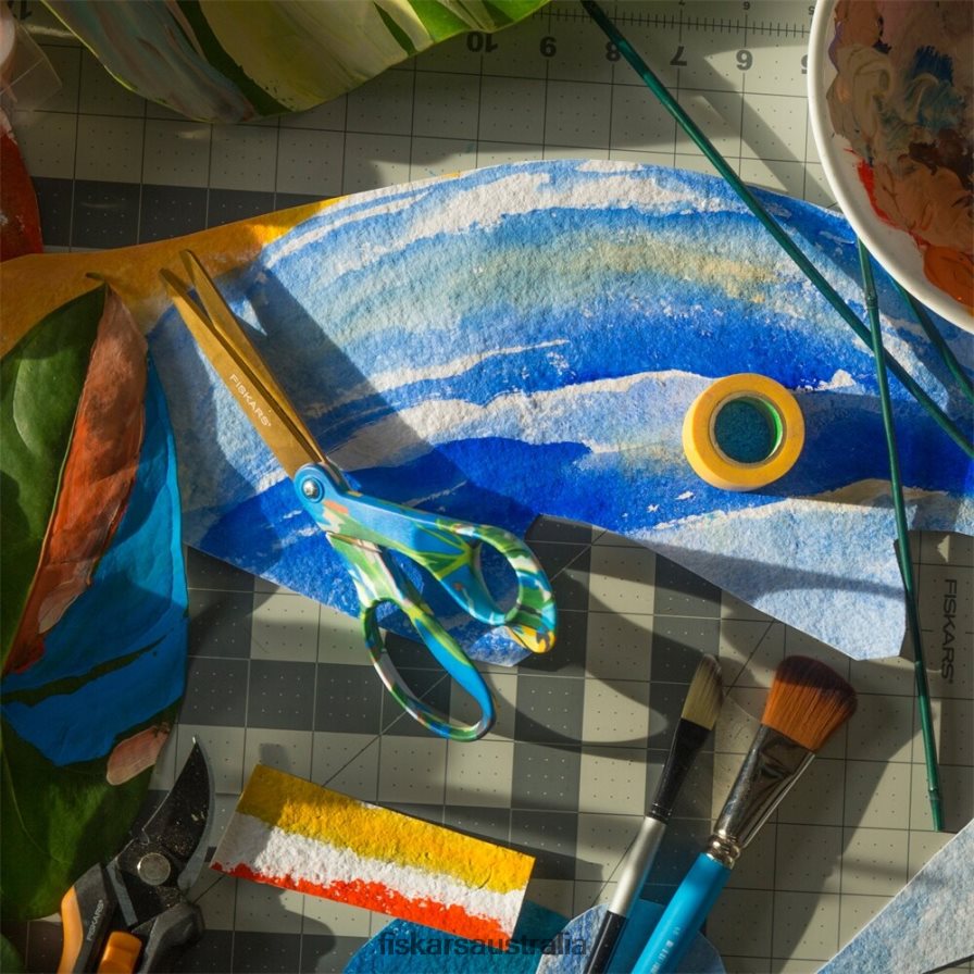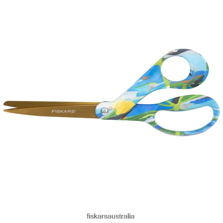 Add adventure to your everyday with Created with Fiskars Scissors in Avant Garden by Wife NYC’s Sophie Parker, featuring a prism of hand-painted strokes dancing across tropical leaves. “Each day I enter the studio with a sense of playfulness and open mindedness-ready to see where nature leads me,” writes Parker. Enjoy the same premium performance and exceptional comfort as The Original Orange-Handled Scissors, with high-grade stainless steel blades, a precision-ground edge that cuts all the way to the tip and an ergonomically sculpted handle for unmatched control.