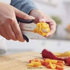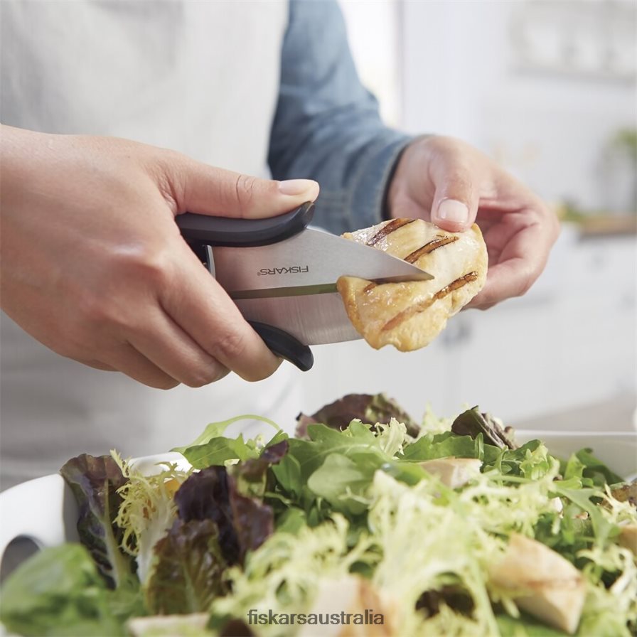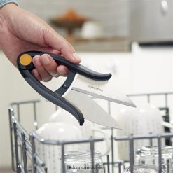 Cast off preconceptions of what kitchen shears should look like. A refreshing, streamlined design makes it easy to chop vegetables, herbs and even meat directly into the bowl, no knife or cutting board required. Engineered to put speed and control at your fingertips, a forward hand position allows you to make quick cuts at any angle. Add to that a spring-action design that makes every stroke of the blades virtually effortless, and you’re sure to be using the Fast-prep Kitchen Shears quite a bit. When dinner’s ready, simply toss the shears in the dishwasher for a thorough cleaning.UseCare