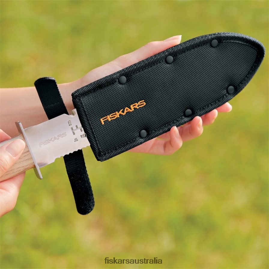 The concave blade features a precision sharpened tip and both sharp and serrated edges. These features make it ideal for digging through hard soil, splitting plants and cutting through stubborn roots, liners and soil bags. The 7″ blade features clearly marked gradations, so planting seeds and bulbs at the perfect depth is a breeze. Our durable wooden handle provides a secure grip while the stainless steel, full tang resists rusting, bending and breaking.
