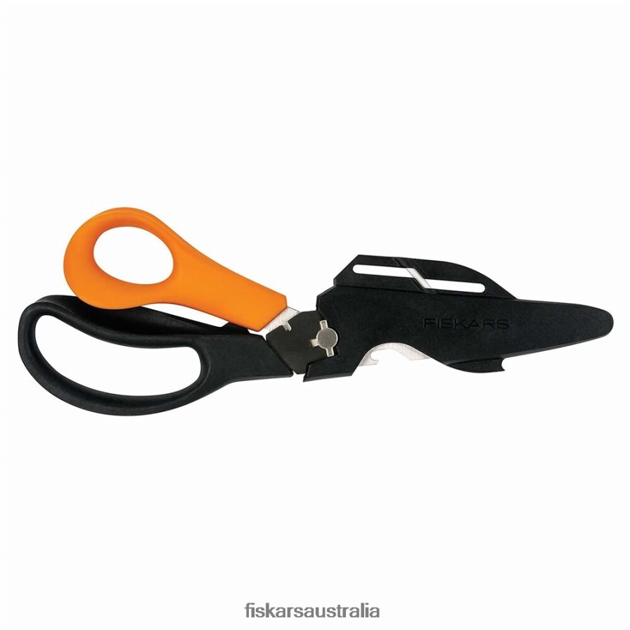 Cut open a wide range of heavy-duty garden materials including fertilizer bags, landscape fabric, screens and more with the multi-use Fiskars Multipurpose Garden Shears. From cutting bed lining to adding mulch, prepping and maintaining a strong foundation is key to a healthy garden and can involve a variety of arduous tasks – all of which rely on retaining blade sharpness. This versatile tool features ergonomically sculpted handles and fully hardened, precision-ground, steel blades that cut all the way to the tip and stay sharp through heavy use. Other features include a power notch to cut light rope, wire and twine cutters, a pointed awl tip for piercing small holes in cardboard and leather, and a bottle opener. The shears can also be taken apart, leaving you with a titanium-enhanced knife for cutting large objects. A sheath for safe transport and storage comes with a built-in tape cutter and ceramic scissors sharpener.