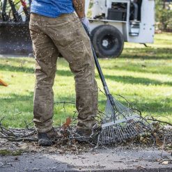 Fiskars Pro Leaf Rake features ultimate durability, making it ideal for quickly and easily cleaning up large quantities of yard debris. An extruded aluminum handle ensures superior strength, while double-bolted connections guarantee the tool will not come apart. Steel tines won’t come loose or break under pressure, thanks to metal tabs that keep the tine rod locked in place. The rake’s longer, overall length helps improve posture and reduce back fatigue, while a teardrop-shaped shaft better fits the contours of your hand. A high-visibility, Softgrip handle also features multiple grip positions for all day comfort and control. The simple, heavy-duty construction of this rake makes it a reliable choice for daily, quality performance under all conditions.