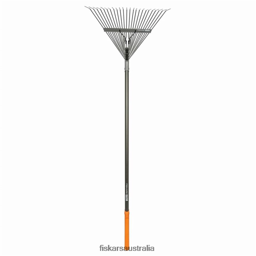 - The Fiskars Pro Leaf Rake features an extruded aluminum handle and double-bolted connections for ultimate strength and durability
