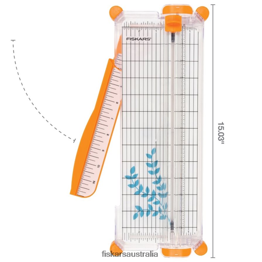 - Self-leveling swing-out arm extends the measuring deck to 12″ to cut extra-large scrapbook pages accurately