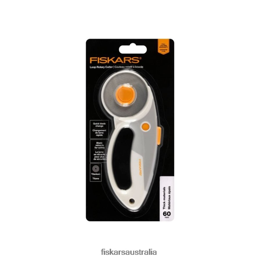 - Fiskars Titanium Loop Rotary Cutter (60 mm) is ideal for cutting batting and multiple layers of thick fabric, such as canvas, denim and leather