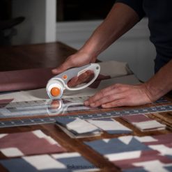 Ideal for cutting multiple layers of fabric, felt and vinyl, Fiskars Titanium Loop Rotary Cutter (45 mm) features a titanium blade coating that is 3x harder than steel for exceptional durability. The 45 mm blade is made of high-grade, precision-ground, premium steel for long-lasting sharpness. A sliding button extends and locks the blade for secure use, and a push-button retracts the blade for safe storage. Blade changes are faster and easier thanks to fewer loose parts. A curved loop-handle design with SoftGrip touchpoints provides a natural fit for your hand, improves comfort and control, and allows you to securely hold the cutter while positioning materials. This rotary cutter can be assembled with the blade on either side to provide optimal blade visibility for right- and left-handed users.