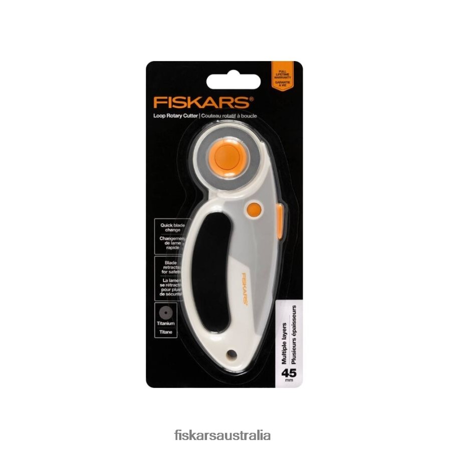 - Fiskars Titanium Loop Rotary Cutter (45 mm) is ideal for cutting multiple layers of fabric, felt and vinyl, with 7 mm blade exposure when in use