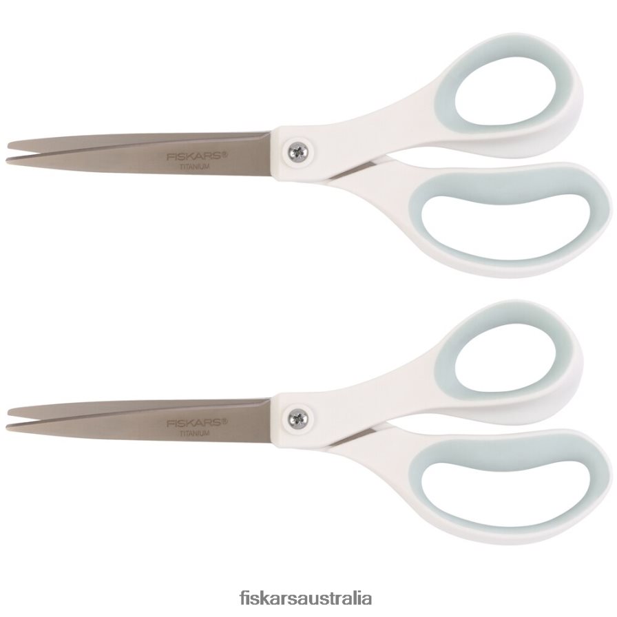 Titanium-enhanced blades offer improved durability, and a Softgrip & handle provides comfortable use. Great for all-purpose cutting in the office or the home, these versatile scissors feature titanium-enhanced, stainless steel blades that cut cleanly and stay sharp through heavy use. A straight handle design provides excellent performance on long, running cuts, the lightweight design and ergonomically sculpted finger loops provide excellent cutting control, and Softgrip & touchpoints help reduce hand fatigue.