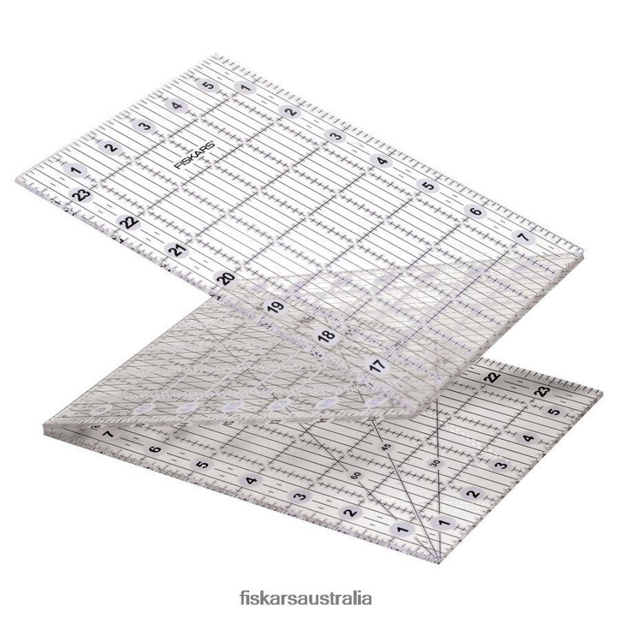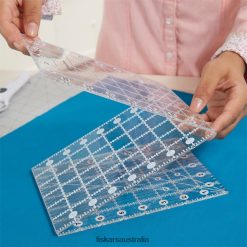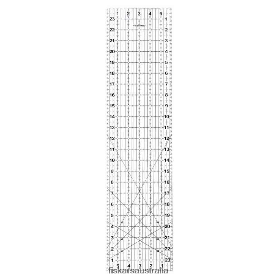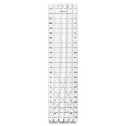 A 6″ x 24″ ruler folds to a third of its size for a portable measuring tool that allows you to make long cuts without the bulk of a regular ruler. A sturdy, convenient design makes it easy to cut fabric strips right from the bolt, while the ruler’s folded 6″ x 8″ position is great for smaller cuts and storage. Clear, durable hinges allow the ruler to lie perfectly flat for smooth cuts without catching or snagging. Lines feature clear intersections and two tones for improved visibility on light, dark and patterned fabrics. Plus, 30-, 45- and 60-degree angle lines simplify angle cutting.