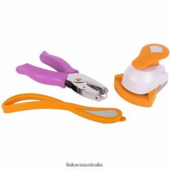 Create beautifully wrapped gifts and party favors with Fiskars Gift Wrapping Set, a curated assortment of three tools to put the finishing touches on any present. Smoothly glide through wrapping paper with Fiskars Gift Wrap Cutter, featuring a double-honed blade and a built-in ribbon curler that doubles as a tape-burnishing tool for perfectly pressed seams. Fiskars Corner Lever Punch instantly transforms any rectangular cutout into a traditional tag shape. Just cut your paper or cardstock into the size you want and punch two corners. A versatile SoftGrip Hand Punch completes your tags with a 1/8″ hole for easy attachment to gifts and favors.