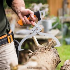 Prepare and organize firewood faster with a durable pair of log tongs that allows you to pick up and position logs up to 12″ in diameter with one hand. Constructed of hardened boron steel, the tongs’ sharpened tips bite into bark for a secure hold, while a finger trigger releases wood in an instant. Comfortable handle sculpting features a non-slip grip and a flared end for improved control and insulation against the cold. Plus, a durable holster simplifies storage and transportation.
