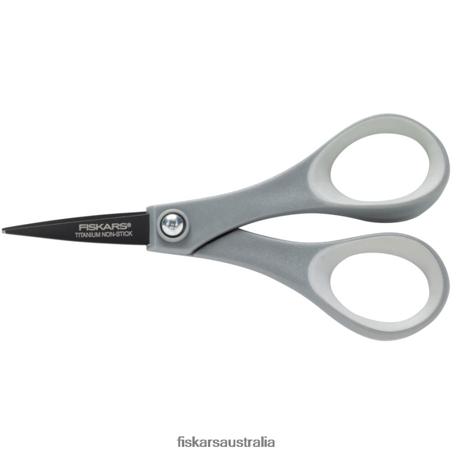 These small, sharp Detail Scissors are a great choice for clipping coupons, cutting out intricate shapes, making quick snips and more. They feature non-stick, titanium-enhanced stainless-steel blades that cut cleanly through materials with sticky adhesives and stay sharp through heavy use. A lightweight double-loop handle provides excellent control when cutting patterns, and Softgrip touchpoints help reduce hand fatigue.