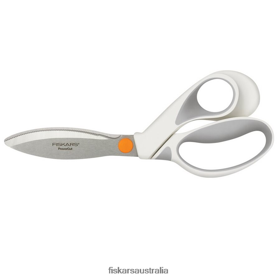 - Fiskars PowerCut(TM) Shears (9 in.) feature patent-pending, strength-enhancing curved blades for up to 2X more cutting power than traditional scissors