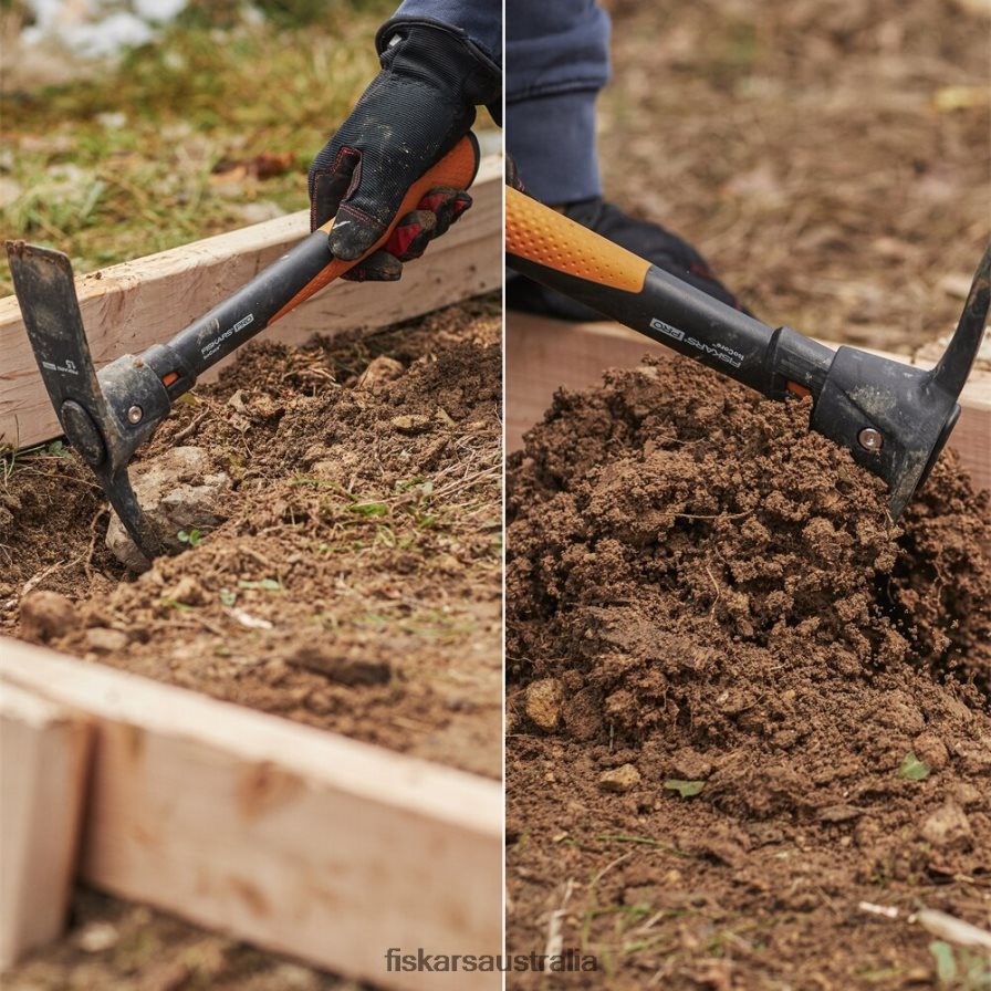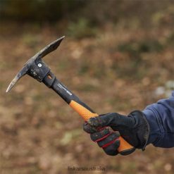 Great for ripping through hardened ground, the Fiskars & Pro IsoCore & 1.5 lb. Pick lets you take on the toughest surfaces while also helping to reduce muscle fatigue and joint pain. The patented, industry-leading IsoCore & Shock Control System absorbs strike shock and vibration by 2X. A dual-layer handle captures any lingering vibration. Premium steel is forged into a perfectly balanced design to help make every swing your best. An inseparable riveted head features a pick and mattock end for use as a hoe, and will not slide down or snap off – even when swinging with maximum force. A performance handle design fits your hand securely and comfortably with strategic texturing that helps improve grip while reducing blisters. The 14 in. handle length is ideal for detailed landscape or small space excavation. This design has been tested to exceed U.S. standards for striking tool durability to withstand the toughest work environments.
