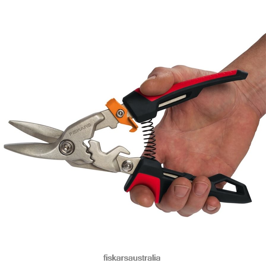 Experience advanced mechanics and ergonomics with a new generation of aviation snips that deliver more strength, comfort and control. PowerGear & technology gives you over 40% more power, especially during the toughest part of the cut. This ingenious technology also helps utilize more of your strength by preventing overextension without sacrificing cut length. An ergonomic, spring-assisted handle helps reduce hand fatigue and features Softgrip & for enhanced dexterity and comfort. Forged, heat-treated steel blades and a forged handle improve strength and durability. The snips can be locked from above or the side and cut up to 18-gauge cold-rolled steel or 22-gauge stainless steel with a cut length of 1 1/2″.