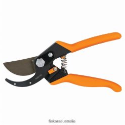 Featuring PowerArc(TM) technology, the Fiskars Pro Pruner boasts intelligently curved blades for 20% easier cuts through stems and light branches. A cast-aluminum handle ensures ultimate durability, while thicker, high carbon steel blades stay sharp longer for reliable, long-lasting performance. Covered with a non-stick coating to help reduce cut force, these blades are also easy to sharpen and replace. A superior ergonomic design includes secure, shock-reducing bumpers that lessen impact, while a high-visibility, Softgrip handle enhances comfort and control. Multiple grip positions on the handle, as well as springs that open the blade after every cut, combine to help reduce hand fatigue. Additionally, a smaller, secondary lock setting helps prevent you from overextending the handle, allowing you to make quicker, easier cuts on small growth. The simple, heavy-duty construction of these pruners makes them a reliable choice for daily, quality performance under all conditions.