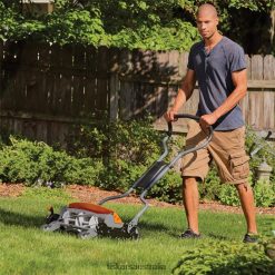 The StaySharp Max Reel Mower combines advanced technology with superior ergonomics to deliver best-in-class cutting performance – no gas, oil, charging or cords required. An InertiaDrive Reel boasts twice the cutting power of standard reel mowers, while a StaySharp Cutting System eliminates the cost and inconvenience of manual blade sharpening. VersaCut Technology makes it easy to adjust cut height to mow all types of grass cleanly. Unique, inset wheels enable ultra-close edge cuts and prevent uncut strips under the wheels. One-touch handle height adjustment enhances your comfort and control while mowing. Plus, a reversible grass chute can be positioned to direct clippings forward, away from your feet, or backward and downward, making it easier to mow tough patches while limiting messiness. All of these great features combine for a reel mower that’s 60% easier to push.