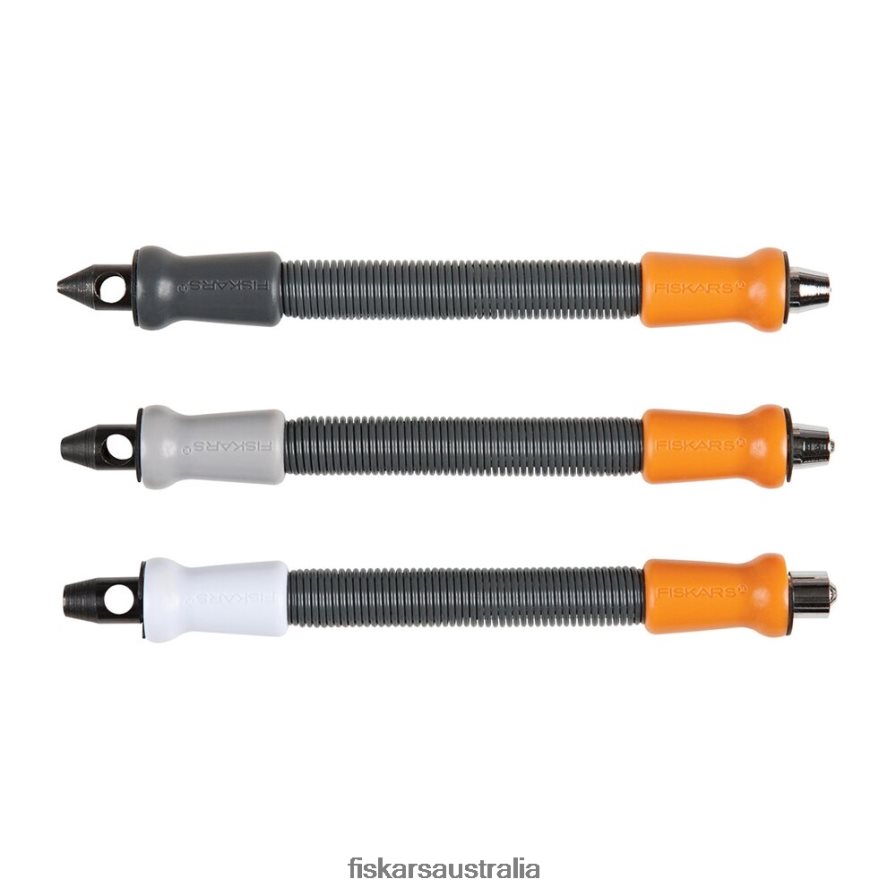 Our spring-loaded Eyelet Setters make it quick and easy to punch holes and set eyelets without ever reaching for your hammer to drive it through the paper. Simply place the hole punch (gray/white end) on the paper, grasp the gray/white grip with one hand, pull the orange grip straight up and release. The spring-action design will punch a clean hole in your paper. Then just place the eyelet in the place setting tip (orange end), grasp the orange end with one hand, pull the gray/white grip straight up and release to insert your eyelet.